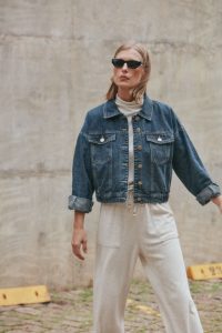As peças em denim aparecem em designs contemporâneos com uma tonalidade original e o jeans leve surge como proposta minimalista em shapes amplos e sofisticados. Além do tecido clássico da marca, há diversos outros materiais como o veludo cotelê, resinados, animal print e tecido plano com textura e barrados em estamparia. O conforto de modo geral foi a aposta para a coleção.