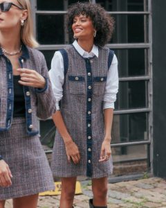 Os destaques ficam para as propostas de camisa, saia longa e blusa em xadrez jacquard; para a estampa animal print, presente em uma saia longa, vestido e blusas de diferentes comprimentos; para a jaqueta, minissaia e vestido em tweed com jeans; e para a jaqueta, saias e calças em jeans texturizado. A combinação do azul e do marrom também ganhou protagonismo no lançamento.