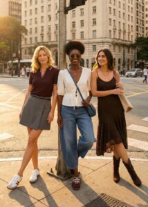 Essa liberdade se traduz, por exemplo, em um design que rompe com o óbvio por meio de assimetrias impactantes. A coleção subverte o tradicional ao misturar texturas e estilos de forma audaciosa: a delicadeza da renda ganha um ar urbano ao lado de camisetas esportivas, enquanto o jeans se funde à sofisticação da alfaiataria. Essa quebra de padrões ignora as fronteiras de gênero, estabelecendo que o jogo de camadas e proporções — presentes em modelagens como as calças barrel, Aladim, wide e harem — são territórios de estilo compartilhados por homens e mulheres.