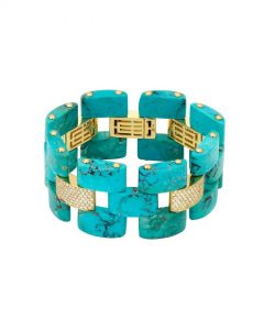 Além dos diamantes, a coleção apresenta turquesas verdes iranianas, madrepérolas, corais e opalas, entre outras pedras preciosas. Letícia Linton demonstra uma habilidade excepcional em criar composições que mesclam cores vibrantes e formas únicas, resultando em peças verdadeiramente sofisticadas.
