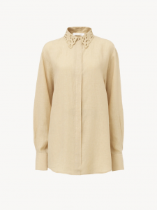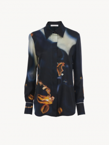 A natureza inspira o pre-fall 22 de Gabriela Hearst nos pequenos detalhes, como os bordados florais presentes nas mangas de casacos de lã de menor impacto, os vestidos e camisas com detalhes de babados.