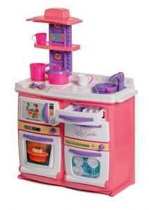 Bella Cozinha: Para estimular ainda mais a imaginação das crianças e a aprendizagem por imitação, a Bella Cozinha possui micro-ondas com som, forno grande com grade, gavetas com divisor de talheres para organizar a cozinha lava-louças com escorredor removível e bancada com fogão e torneira que sai água de verdade.