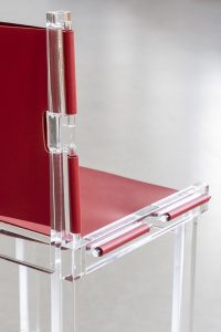 Para criar a Cadeira #2, a Alex Athayde se inspirou no trabalho de Jerônimo Centeno Gonzalez, marceneiro espanhol que trabalhava em colaboração com o arquiteto Giuseppe Scapinelli. O italiano confiava a este profissional a confecção das cadeiras, o mais delicado e geralmente o mais emblemático item do mobiliário – é desta convicção de que a cadeira é o objeto mais importante de um ambiente que surge a #2 e, posteriormente, a banqueta Êka. Confeccionadas em acrílico cristal e couro legítimo, trata-se de uma peça única a combinar conforto, beleza e versatilidade.Cadeira #2 e Banqueta Êka
