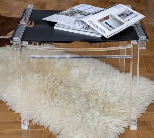 O acrílico dá forma a objetos de leveza ímpar que, embora transparentes, não passam despercebidos. O encaixe entre os componentes segue a linha clean do estúdio, dispensando perfurações ou parafusos.