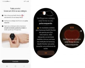Os dois recursos disponíveis são o BP App – Pressão Arterial 4, que consiste em uma aplicação do Samsung Health Monitor para medir e registrar sua pressão arterial, e o ECG – Eletrocardiograma5, que age para capturar sinais bioelétricos do usuário e detectar a arritmia cardíaca do tipo Fibrilação Atrial5 ou o Ritmo Sinusal5.