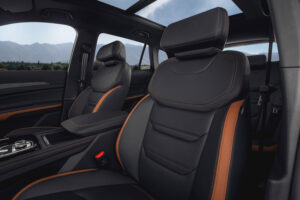 As rodas esportivas de 19” com acabamento escuro e cromado e pneus 235/50, as maçanetas cromadas e o para-choque traseiro de linhas retas são outros itens novos. A carroceria oferece seis opções de cores modernas e expressivas: as novas Cinza Dover, Azul Profundo e Verde Oásis, além de Branco Bariloche, Cinza Catar e Preto Toronto.