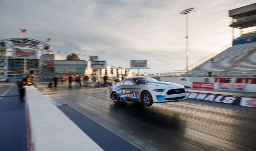 O Cobra Jet 1400 registrou essa marca em junho de 2021, pilotado por Bob Tasca III. O veículo foi construído pela Ford Performance em parceria com a MLe Racecars, a AEM-EV, a Cascadia Motion e a Watson Engineering, mesmo time que agora voltou à prancheta para a atualização do chassi, trem de força e sistemas de controle.