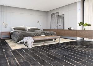 Os tons mais escuros e com estética envelhecida da madeira denotam o estilo rústico bastante buscado para os projetos. A Série Legno Negro, da Roca Cerámica, na opção preto e dimensão 20 x 120 cm, captura fielmente a beleza da madeira envelhecida graças à tecnologia avançada de impressão digital em alta resolução.