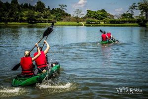 Vale a visita também para conhecer o novo complexo aquático que o Villa Rossa acabou de inaugurar: um projeto de arquitetura sustentável, com uma piscina de 800 m2 com toboágua, cachoeira, duchas, percurso, iluminação noturna. O projeto foi pensado para atender todos os públicos, trazendo piscinas pouco profundas onde as crianças podem se divertir em segurança, uma praça molhada para interações com gêiseres saindo do chão e cachoeiras onde é possível sentir toda a força que a água carrega em seu curso. Um dos grandes destaques do projeto é o uso da tecnologia da biomassa para aquecimento dos 1 milhão e meio de litros de água.