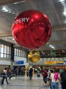 Contribuindo com o ambiente natalino no aeroporto, a Dufry pendurou bolas de cristais natalinas pelos Terminais de Passageiros 2 e 3, dando um toque especial para captar os olhos de todos os viajantes.