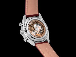 O design do fundo da caixa é totalmente personalizado para revelar uma figura impressa de um dragão chinês em torno do vidro de safira. Ao seu redor, há gravuras especiais para indicar o lançamento limitado do relógio, “Limited Edition” junto com “One of 300” para a versão em aço e “One of 50” para a versão mais exclusiva em ouro rosa 18K 5N.