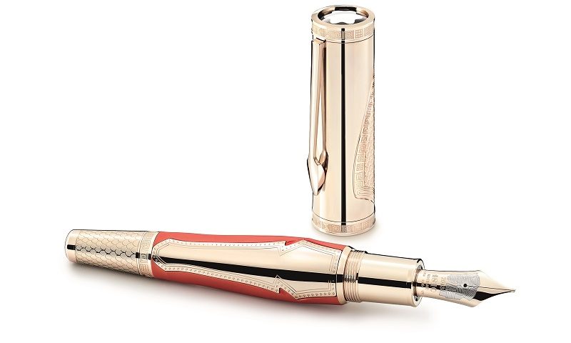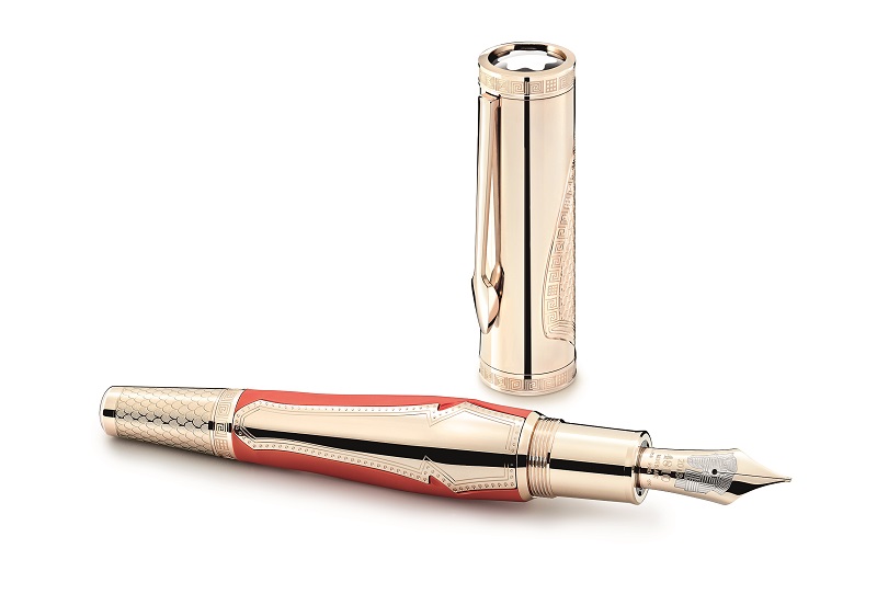 Com um número de limitação que faz referência ao ano da primeira tradução da Ilíada de Homero em inglês, o design da Montblanc Escritores – Homenagem a Homero, edição limitada 1581, baseia-se na história do Cavalo de Tróia com a mesma silhueta equina. Evocando uma segunda cor característica da cerâmica grega clássica, a tampa e o corpo são feitos de resina de coral preciosa. O revestimento de ouro na tampa é inspirado na armadura do lendário guerreiro Aquiles, a figura central da Ilíadade Homero. O tampo de capas de ouro revestido de champanhe, o anel de tampa, o cone e a ponteira são todos decorados com uma gravura especial, que representa o hexámetro dactílico, o medidor tradicionalmente associado à antiga poesia épica grega. O emblema Montblanc no topo da edição limitada é feito de preciosa madrepérola.