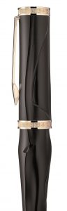 O cavalo de Tróia, o famoso estratagema de Odisseu, é refletido na silhueta da edição, evocando a cabeça e o corpo do cavalo de madeira de forma estilizada. A resina preciosa preta fosca da tampa e do corpo do instrumento de escrita é emparelhada com acessórios revestidos de ouro em tom de champanhe para fazer eco à cerâmica grega de vasos pretos, muitas vezes decorados com cenas da poesia homérica. A lendária lança de Aquiles, que nenhum outro herói lutando em Tróia estava disposto a empunhar, na Ilíada de Homero, é a inspiração para a forma do clipe revestido de ouro, enquanto o capacete de Aquiles adorna a pena de ouro artesanal.