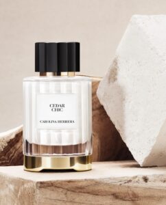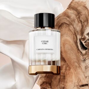 Cedar Chic se abre com uma explosão de frescor, onde bergamota e aldeídos criam notas de topo que envolvem como o aroma de algodão recém-prensado. Em seguida, as notas de flor de laranjeira, com seu romantismo mediterrâneo, constroem um coração floral e envolvente, moldado como uma blusa de organza. As notas de base, que permanecem por mais tempo na pele, destacam o ingrediente estrela: o cedro, componente clássico da perfumaria masculina tradicional, aqui redesenhado com força e suavidade para criar um rastro andrógino. O cedro é um ingrediente muito poderoso, e o perfumista Antoine Maisondieu conseguiu extrair diversas nuances dele, que se adaptam à personalidade de cada indivíduo”, explica Carolina A. Herrera. O segredo está no uso de três extratos distintos de cedro, realçados pela luminosidade das notas de almíscar branco.