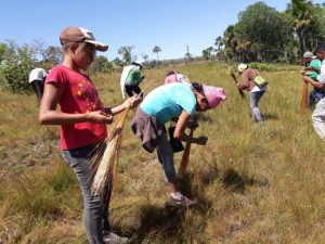 Sedenta por informações, em sua busca por uma associação que a pudesse auxiliar com este material, chegou até a Associação de Capim Dourado de Manaus. Dina conheceu toda a trajetória da instituição, atualizou-se sobre o processo da colheita, de tecimento das fibras e como vivem os associados: “Isso me inspirou mais ainda a trabalhar com esse material, que já vem sendo usado em biojoias, bolsas, artigos para casa, … Decidi ajudá-los de alguma forma”, comenta a designer.