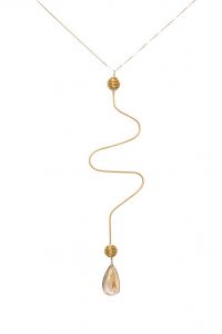 As formas desenvolvidas por Dina para a criação das peças, refletem a busca pela sobrevivência destes artesãos, com suas coreografias e nos cantos celebrados na hora da colheita do “ouro natural”, além dos movimentos da própria fibra na natureza com a incidência dos ventos.Dina cria então a coleção cápsula “O Ouro do Jalapão” composta por brincos, colar e anel usando o capim dourado em fusão com o ouro 18K, gemas brasileiras como o citrino e quartzo rutilado, e rubis.