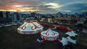 As apresentações acontecem de terça a domingo em uma lona montada em frente ao Cataratas JL Shopping