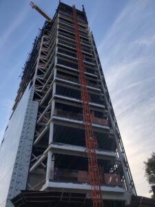 Implantado em um canteiro restrito e ao lado do já existente Berrini One, o novo edifício enfrentou o desafio de crescer verticalmente sem impactar a operação ativa do entorno. A adoção de um sistema construtivo industrializado, com estrutura em aço, foi decisiva para acelerar a execução, reduzir resíduos e manter o canteiro organizado em meio ao tráfego intenso da região.