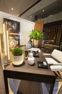 Idealizado pelos arquitetos Gerson Dutra de Sá e Ana Lucia Salama, o espaço criado para a mostra D&D Home Office reflete sofisticação sem abrir mão do conforto