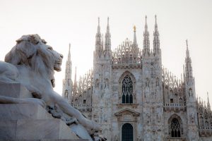 A Catedral de Milão, a vista da cidade das torres da Catedral de Milão é uma experiência imperdível, e toda a Catedral é uma narrativa extraordinária de seis séculos de história, contada através do mármore Candoglia, a luz das naves e as incontáveis estátuas.