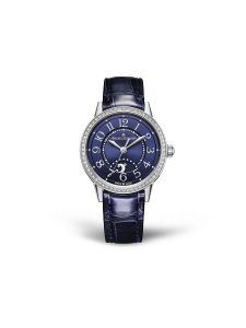 Oferecendo uma leitura nítida das horas, os algarismos empoados prateados do relógio Rendez-Vous Night & Day se destacam delicadamente sobre o mostrador azul-escuro que possui um acabamento com efeito sunray.