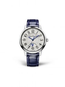 A pulseira em couro de crocodilo azul-escuro com pespontos tom sobre tom combina delicadamente com a cor dos ponteiros e do indicador dia/noite. Um toque muito elegante que enaltece o pulso.