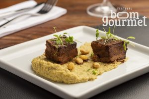 “A costela prensada de uma das entrada, por exemplo, fica cozinhando por 24 horas, e depois passa mais 24 horas descansando até pronta. Em outro prato, o pirulito de costela, a gente ‘injeta’ o molho na peça, para que ele seja bem absorvido durante o processo de cocção de dentro para fora”, conta o chef que pensou nos mínimos detalhes em cada prato servido.