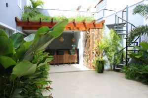 O desejo dos clientes era claro: eles buscavam uma área verde que não apenas complementasse, mas também suavizasse os canteiros de concreto, conferindo um aspecto natural e acolhedor ao ambiente. O conceito do projeto foi definido como tropical minimalista, combinando a exuberância da flora tropical com linhas e formas simples.
