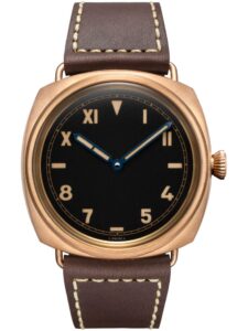 Reza a lenda que o mostrador California recebeu seu nome peculiar de uma empresa de restauração de mostradores na Califórnia que ficou conhecida por modificar esse tipo de mostrador de relógio e levar os colecionadores a apelidá-los de “California”. A pulseira é confeccionada em couro bovino marrom – escuro com construção vintage e uma fivela de pino de bronze com formato trapezoidal, que remete aos relógios Panerai históricos acobertados pelo segredo militar. O relógio resiste a mergulhos de até 100 metros de profundidade.