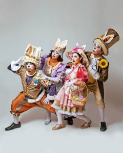 com personagens e banda de fanfarra