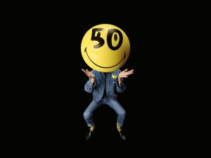 Cinco décadas depois de surgir nas páginas do jornal France Soir, Smiley ganha na Galeries Lafayette Hausmann, que é um dos locais mais visitados por turistas em Paris, uma celebração jamais vista. Para a comemoração do 50º aniversário desse símbolo universal de alegria e otimismo uma série de variados produtos foi criada com a colaboração de estilistas, designers e chefs, que irão oferecer ao público, entre 21 de fevereiro e 3 de abril, desde peças de vestuário a chocolates, doces, artigos de beleza, acessórios, souvenires e até mesmo sandálias havaianas. Tudo estampado com o sorriso mais famoso do planeta, hoje considerado o ‘pai’ dos emojis da era digital.