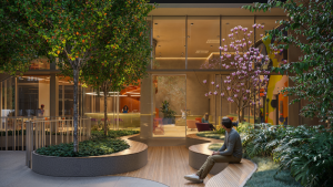 O acesso ao hall do B41 vai passar por uma praça, que ficará aberta à comunidade em horário comercial e terá espaços de descanso. O projeto de paisagismo do B41, assinado pela Tellini Vontobel Arquitetura, completa o visual contemporâneo e jovem do empreendimento, que, além do colorido dos murais, terá áreas verdes em todos os pavimentos. “Traremos um verde interno que vai surpreender. Haverá espaços com bancos na praça central do edifício e em todas as áreas de circulação. Escolhemos vegetação com características tropicais, com folhas mais largas, densas e resistentes às variações de temperatura e condições climáticas de Curitiba, e que, por isso, exigem menor manutenção”, explica a arquiteta e paisagista Giovana Nogueira.