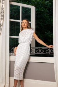 Entre os detalhes, a aposta está nos cortes assimétricos e nos degagês, que valorizam a silhueta feminina e trazem um toque moderno aos clássicos de moda festa. “Cada peça é pensada para tornar os momentos especiais ainda mais inesquecíveis, com combinações de design que unem ousadia e sofisticação.”, finaliza Luciana.