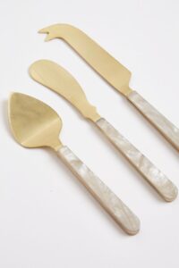 Os talheres também seguem uma linha minimalista e elegante, com acabamentos foscos ou acetinados, especialmente em dourado queimado, cobre ou inox escovado, como a linha de talheres Paris, da St. James, que combina design, resistência e qualidade. E na hora de servir os aperitivos, os modelos com cabos de resina marmorizada da Le Lis Casa adicionam personalidade à composição, reforçando a busca por formas diferenciadas que dialogam com a arte de bem receber.