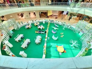 Já para os mais novos, o PkB oferece o Espaço Baby. Um convite ao brincar seguro e acolhedor. O ambiente conta com brinquedos educativos de encaixe, cubos pedagógicos, cavalinhos de balanço, gangorras, mesinhas infantis e desenhos temáticos de Páscoa para colorir com giz de cera, pensados para estimular a criatividade e a imaginação.