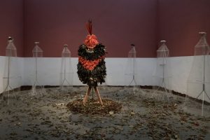 Os Tupinambá eram considerados extintos até o ano de 2001, quando finalmente o Estado Brasileiro reconheceu que esse povo não só nunca havia sido exterminado, como está ativo na luta para reaver seu território e parte de sua cultura que fora retirada pela colonização. “A exposição é realizada no ano em que um dos mantos tupinambá retorna ao Brasil depois de um longo período no exílio europeu, onde estava desde 1699 como um preso político. A vestimenta atravessa tempos e atualiza as problemáticas da colonização, enquanto os Tupinambá e outros povos continuam suas lutas anticoloniais em seus territórios – como Ka’a Pûera, pássaros que andam sobre florestas que ressurgem”, complementam os curadores.
