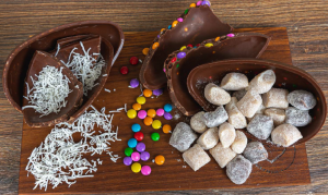 A Coleção Bem Docinho segue uma ideia similar, mas o recheio pode ser com macarons banhados no chocolate ou confete com bala de brigadeiro, tudo por R$ 68. Para quem gosta de chocolate amargo, ou não pode ingerir açúcar, Pat Nascimento pensou na Coleção Intensa, com ovos de chocolate 70% Cacau e com quatro opções de recheio: mix de castanhas e damasco, chocobacon, tâmaras e puro (apenas 70% chocolate), todos por R$ 79.