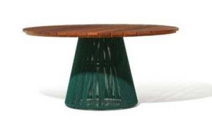 Também assinada por Daniela Ferro, a mesa Aram (abaixo) expressa funcionalidade por um design limpo em formas precisas. As cores intensas de seus fios revestem o móvel de uma forte personalidade, um magnetismo estético em sua essência. O destaque está na oposição entre a solidez das superfícies de madeira e os vãos formados pelas cordas tramadas na base.