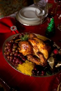 Como a tradição manda, o peru está presente entre as opções, na versão assado ao vinho branco, recheado com farofa de foie, decorado com frutas frescas e acompanhando o molho do assado. Também disponível o tender com mel e tangerina.