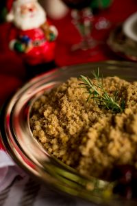 Para acompanhar os pratos, a farofa chega em duas versões: salgada – com ovos e azeitonas, e a farofa doce – com frutas secas e castanha portuguesa. O chutney de abacaxi ou maçã combinam muito bem com as criações. O gran finale são as tarteletes, seja de chocolate com amêndoas, limão siciliano ou maçã – que com certeza farão sucesso na ceia.