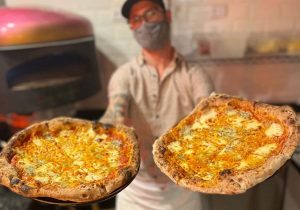 Totalmente voltado para a gastronomia hoje, o pizzaiolo levou a Linho Forneria para o Âmbar como uma “guest”, ou convidada especial. Vem fazendo tanto sucesso que a temporada foi esticada e tem previsão de ficar durante o mês de novembro.