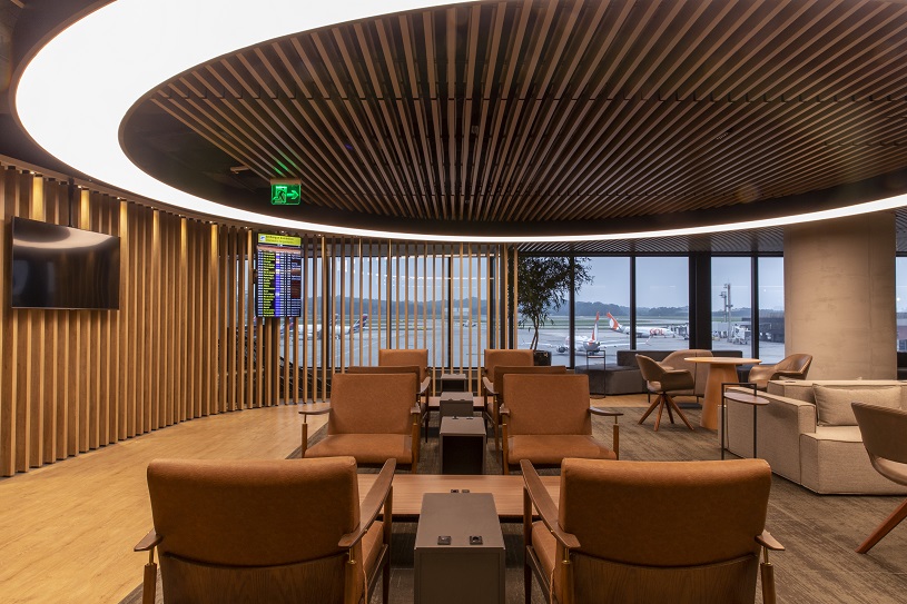 Localizado na área pública de embarque (check-in) do Terminal 2, o lounge tem design moderno e exclusivo, paredes envidraçadas que garantem entrada de luz natural e vista para um jardim, poltronas confortáveis e bancadas que acomodam, confortavelmente, 25 pessoas sentadas. Complementarmente, possui sala de reunião para até 10 pessoas.