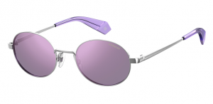 Os óculos de sol PLD 6066/s apresentam um formato oval de metal, com as pontas das hastes a combinar com as cores das lentes, disponível em prata/lilás com lentes espelhadas cor-de-rosa, ouro/azul com lentes platina, ouro/laranja com lentes cobre, prata/preto com lentes polarizadas cinza.
