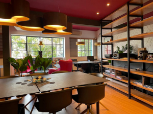 A planta de 100m² divide o espaço entre o living, escritórios abertos e sala de reunião com várias abordagens de percepção, integração e características bem definidas, visando melhorar o bem-estar e a produtividade. O grande fio condutor deste projeto é a intensa paleta, que emprega diversas cores, explorando o conceito policromático com o contraste entre os tons fortesnas paredes, com efeitos comprovados de significância positiva. As poltronas diferenciadas que buscam o estimulo visual em contraponto à decoração personalizada, objetos lúdicos e coleções de artes que foram distribuídas pelo ambiente, incentivando o aconchego dos funcionários e um aspecto ativador com a combinação de fatores.