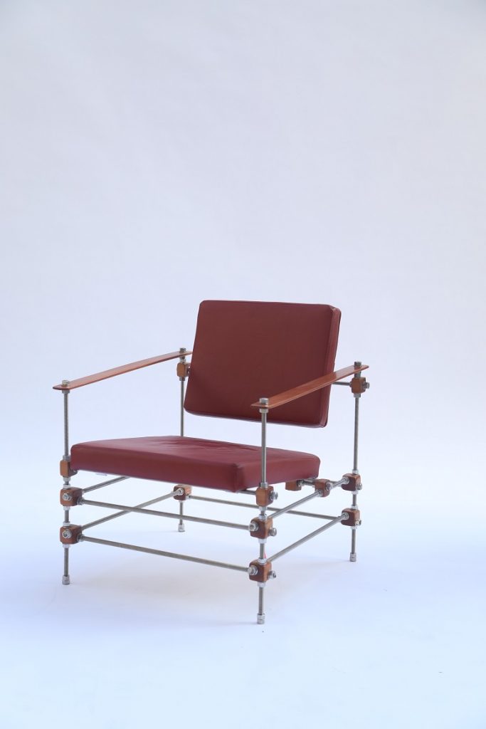 Logo em sua primeira participação em uma premiação, o produto ganhou primeiro lugar, no Prêmio do Museu da Casa Brasileira. A barra roscada, um dos elementos comuns no mobiliário produzido por Guilherme, criou uma atmosfera industrial e moderna, contrapondo o calor da madeira e o classicismo do couro. Um convite ao dolce far niente.