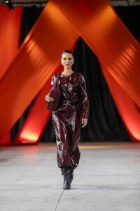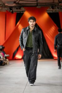 O toque macio do suede e a presença marcante do vinil reforçam a modernidade da coleção. A alfaiataria ganha protagonismo com o clássico risca de giz e com as tradicionais camisas que ganham design ajustável e laços.
