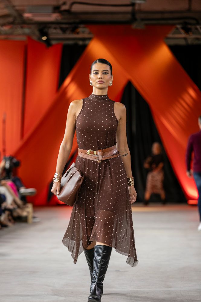 As modelagens exploram novos volumes com calça barrel, enquanto o aconchego da estação aparece em casacos de matelassê, peças em pelo e ponchos com ou sem franjas. O design gráfico também marca presença por meio das peças em tricô argyle, nas transparências delicadas de rendas e tule, além de estampas xadrez, poás em tons terrosos e animal print.