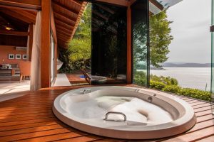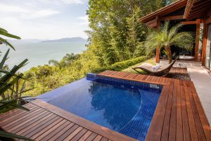 Com seus irresistíveis bangalôs de até 310 m2 que resguardam total privacidade e panoramas de arrancar suspiros – grande parte deles traz piscina aquecida, sauna e lareira – refugiar-se no Ponta dos Ganchos é um deleite em qualquer estação do ano.