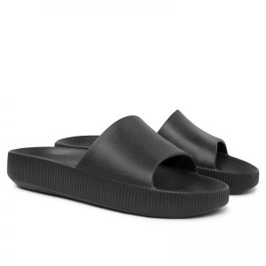 O modelo, que lembra um crocs, é ideal para o dia a dia, home office e até para um look mais causal. Confeccionado em EVA, ou seja, super flexível, o slide Poofy da Usaflex está disponível nas cores preto, hortelã, coral melancia, bege rose, marrom tan e custa, em média, R$ 100.
