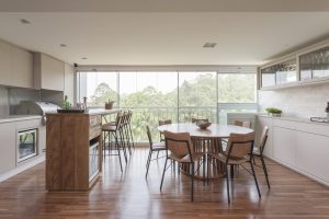 Os caixilhos entre os ambientes saíram de cena para criar uma área social ampla e contínua, com sala de jantar ocupando a varanda, churrasqueira, espaço para o piano, cantinho de leitura, sala de TV e living contíguos | Foto: Thiago Travesso